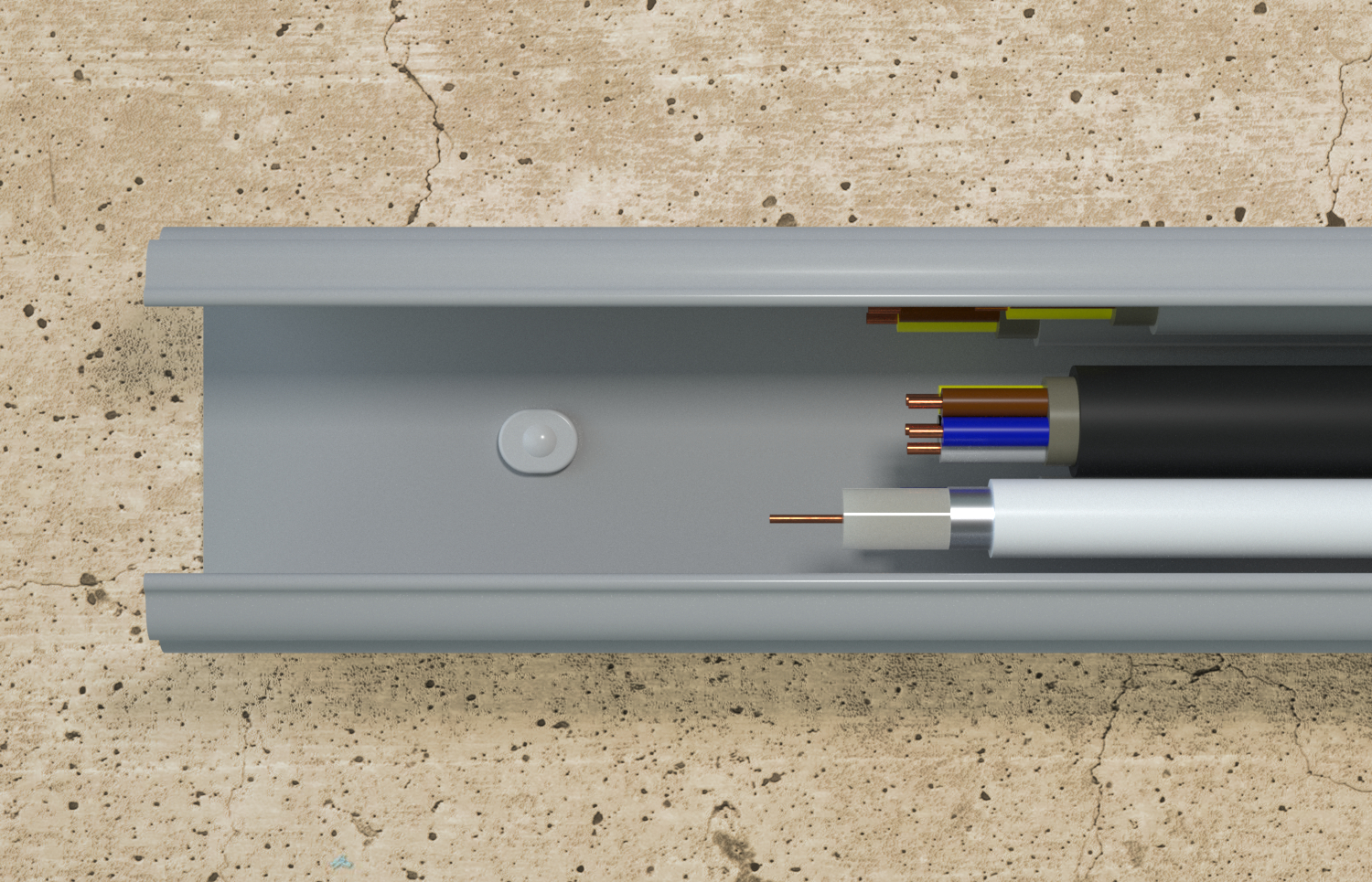 Uživatelsky snadná zásuvná montáž kabelových žlabů a kabelových třmenů