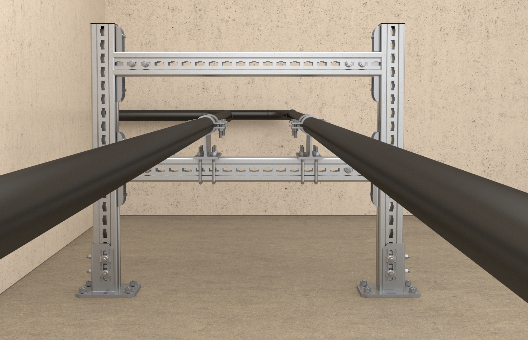 Pevné body a kluzná uložení slouží k upevnění dilatujícího potrubí tak, aby nedošlo ke kolapsu potrubní trasy a poškození napojených technologií. Příložky kluzného bodu se upevní pomocí hranatých třmenů FMFS UB a styčné podložky jsou vybaveny plastovou vložkou, která tvoří základ kluzného ložiska. Povrchová úprava kovových částí žárovým pozinkováním zajišťuje dlouhodobou odolnost proti korozivním vlivům vlhkého a vnějšího prostředí.