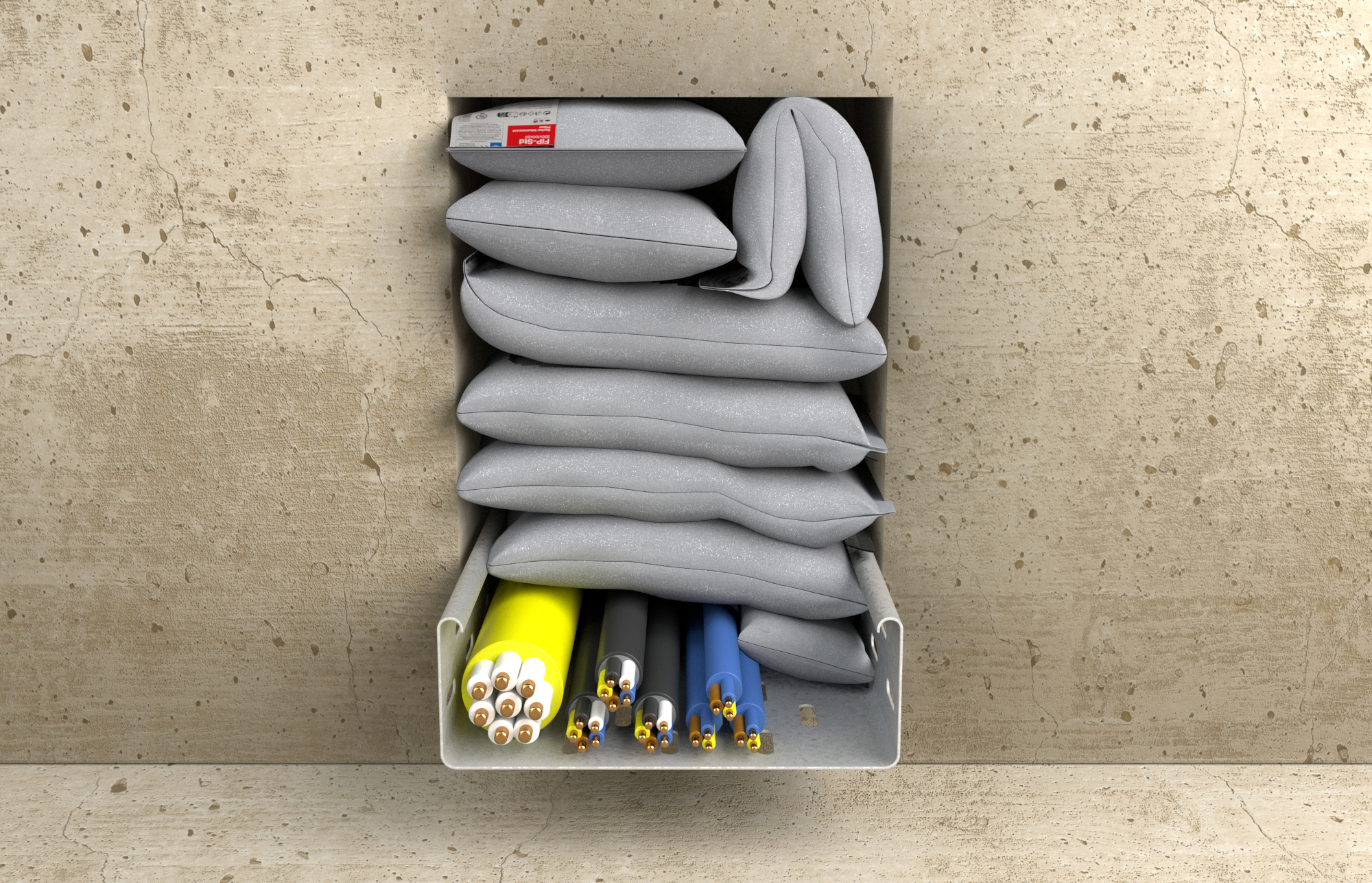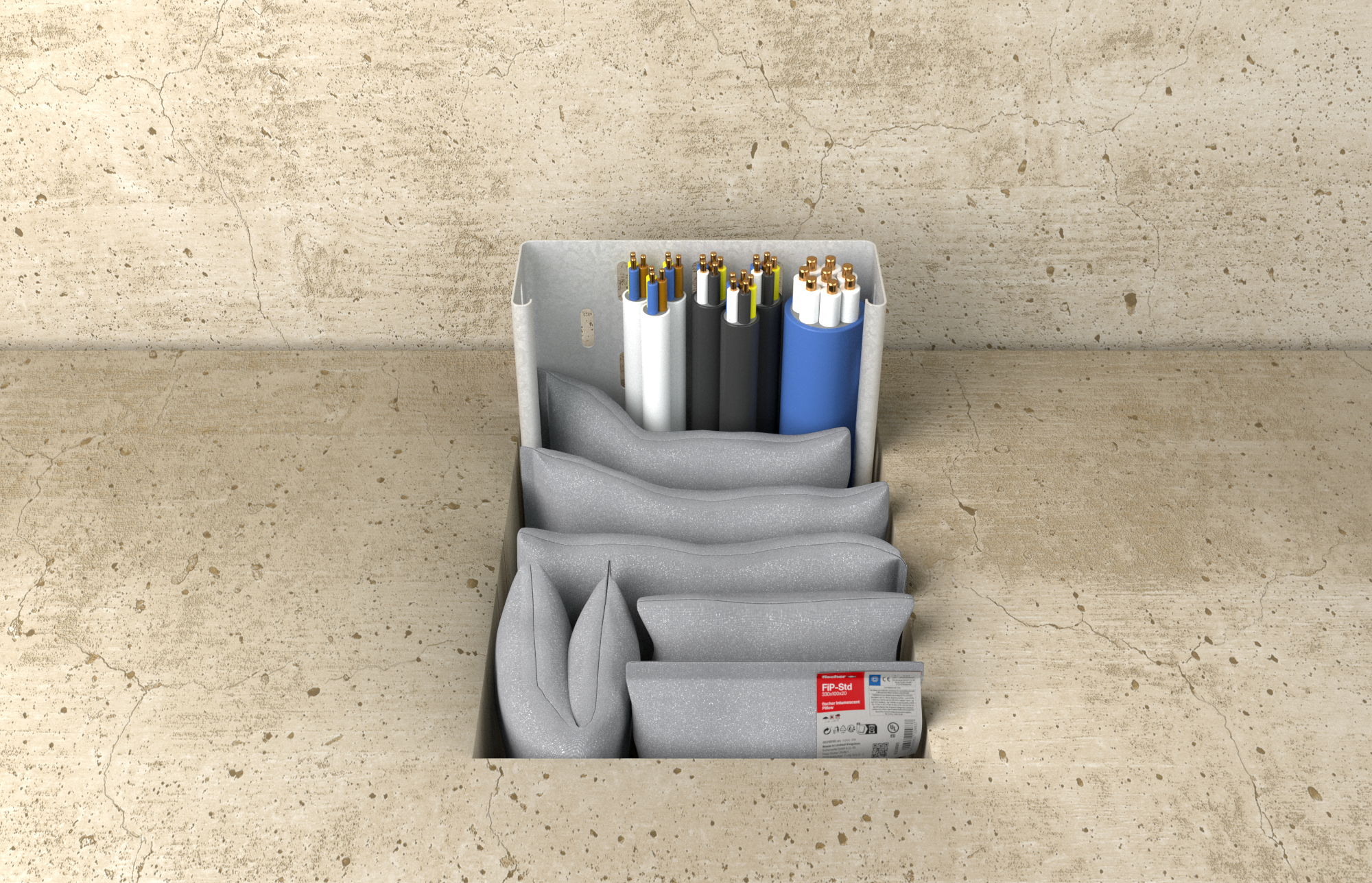 fischer protipožární polštáře FiP jsou pytlíky z tkaniny z PVC vyztuženého skelnými vlákny, které obsahují směs grafitového prášku a minerálních vláken. Předností polštářů FiP je, že z nich lze zhotovit protipožární ucpávky trvalé i dočasné.