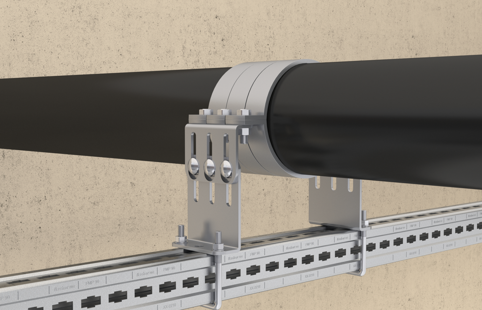 Pevný bod se používá k upevnění těžkého potrubí, které podléhá rozměrovým změnám způsobeným kolísáním teplot. Pevný bod drží potrubí pevně na místě a směruje rozpínání požadovaným směrem. Pomocí hranatých třmenů se sáně upevní na montážní lištu. Díky povrchové úpravě žárovým pozinkováním se sáně těší dlouhodobé odolnosti proti korozivním vlivům.