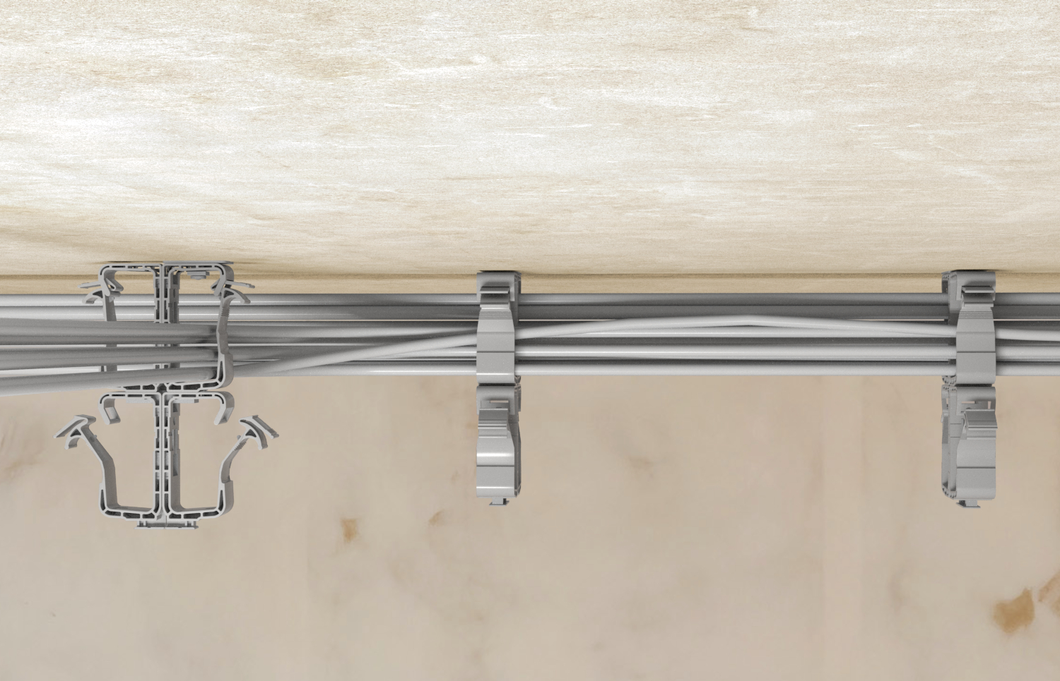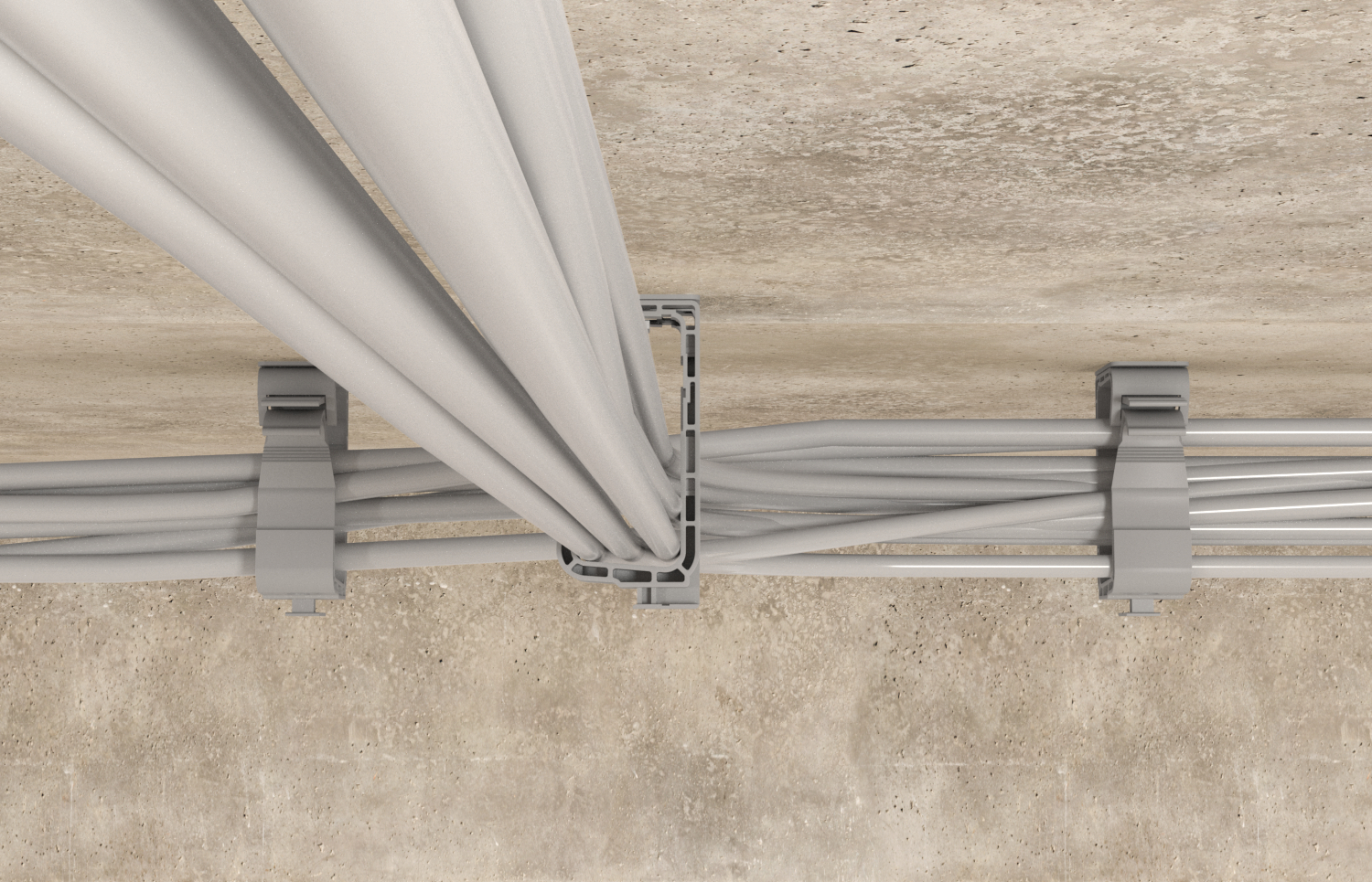 Kombinovaný sběrný držák pro montáž kabelových svazků.