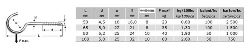 Hák s vrutem velké oko 6,1x100/40 ZN
