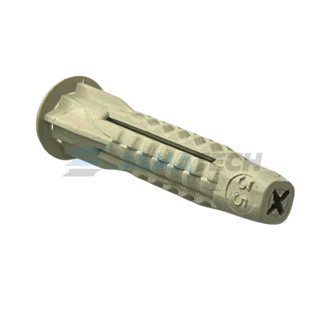 Uzlovací hmoždinka TMT se hodí pro lehká upevnění do dutinových a plošných materiálů nebo sádrokartonu. Je vyrobena z polypropylenu, což je plast, který vyniká svou chemickou i mechanickou odolností. Samotná montáž uzlovací hmoždinky je snadná, díky lemu zabraňujícímu vtažení do otvoru a čtyřem výstupkům proti protočení na krčku hmoždinky.