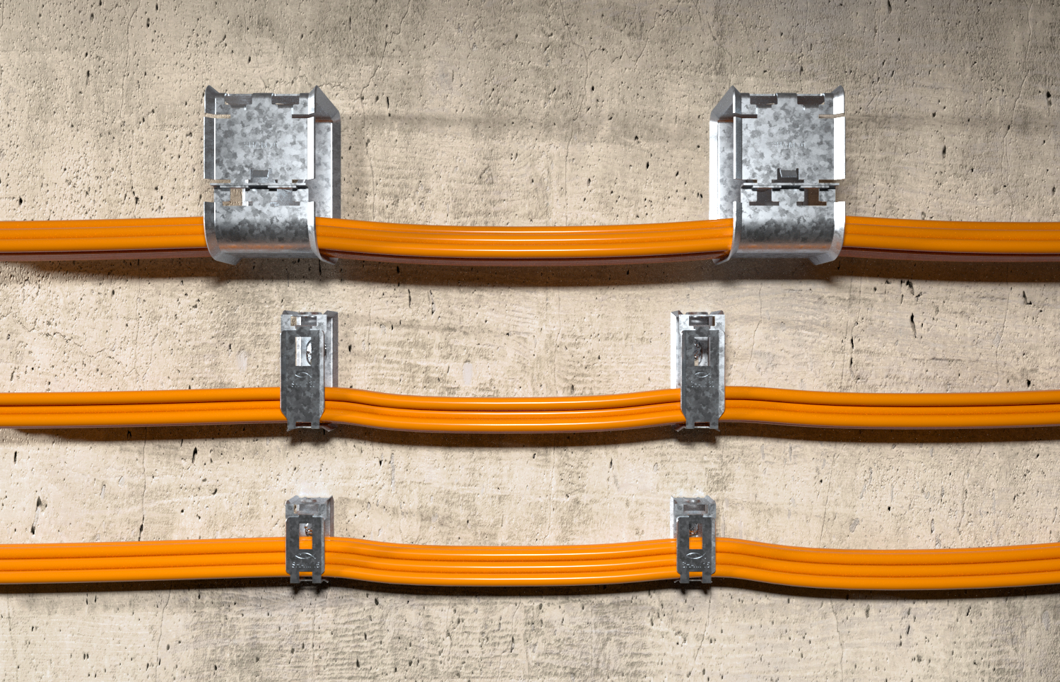 Kovový sběrný kabelový držák SHA M nabízí vysokou odolnost. Slouží k upevnění jednotlivých kabelů nebo celých svazků třeba ke stropu nebo na zeď. Držák lze bezpočtukrát uzavřít a zase otevřít bez potřeby nářadí, takže vyjmutí nebo dodatečné vložení nových kabelů není problém. Držák lze rychle a snadno upevnit ke stavební konstrukci třeba pomocí FNA II (na beton) nebo obyčejnou plastovou hmoždinkou s vrutem (na zdivo).