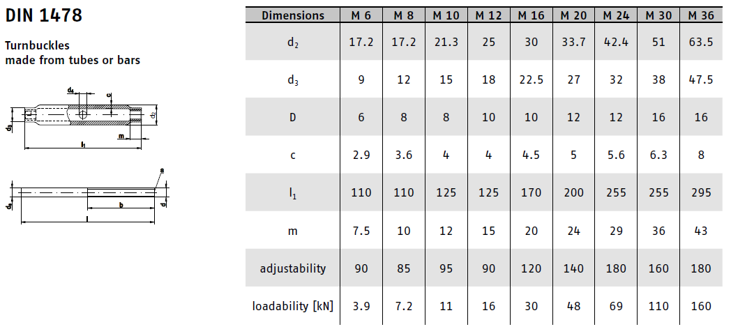 Matice DIN 1478 je speciální typ matice určený pro napínání lan a řetězů. V provedení samotná matice nebo matice s navařovacími konci, kombinací hák-hák, oko-hák, oko-oko nebo s vidlicemi.