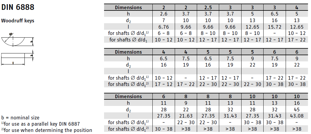 Pero Woodruffovo DIN 6888