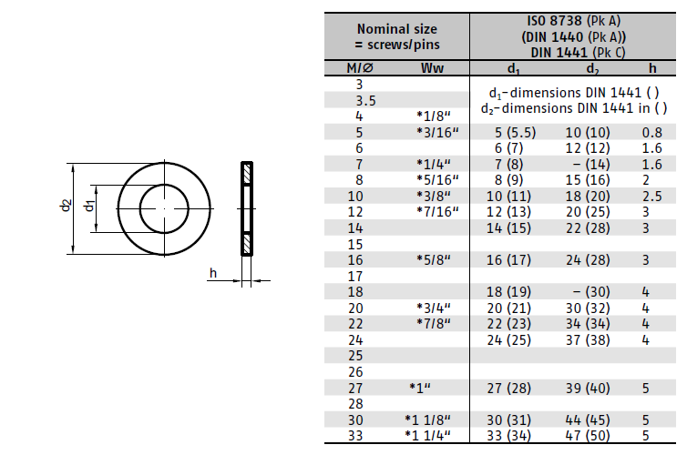 DIN 1441 je označení pro klasickou plochou podložku, která se používá pod čepy. Slouží k rozložení tlaku a zabránění poškození materiálu, do kterého je čep zasunut. Její jednoduchý, ale účinný design ji činí jedním z nejpoužívanějších spojovacích prvků.