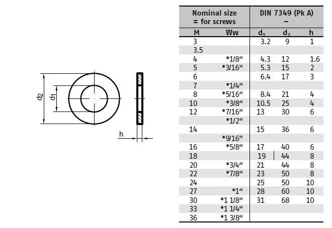 DIN 7349 označuje speciální typ ploché podložky, která se vyznačuje výrazně větší tloušťkou než běžné podložky. Díky své robustnosti je ideální pro aplikace, kde je vyžadována vyšší odolnost proti zatížení a vibracím.