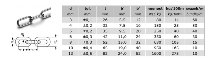 Řetěz dlouhý článek DIN 763/5685C 4 leštěný, svazek 30m