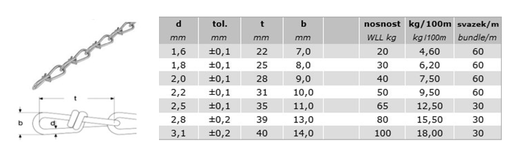 Řetěz uzlovaný DIN 5686 2,5 ZB, svazek 30m