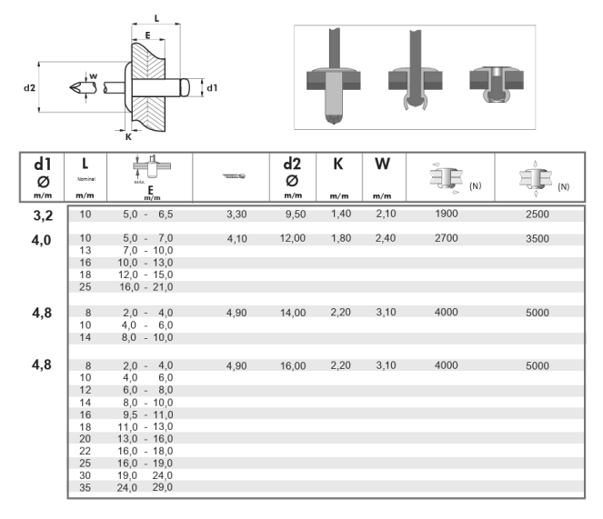 DotazTrhací nýt s plochou hlavou DIN 7337