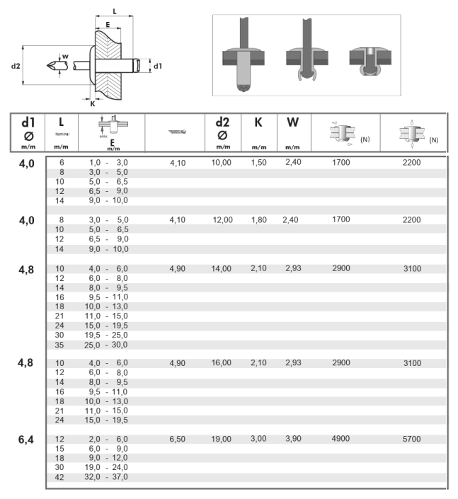 DotazTrhací nýt s plochou hlavou DIN 7337