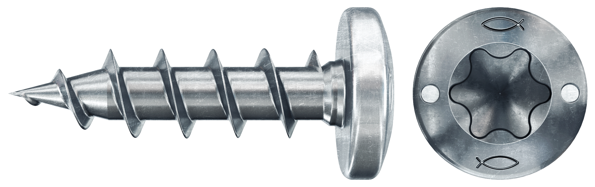 fischer PowerFast FPF II PTF je vrut do dřeva v bílém zinku s celým závitem a plochou hlavou s utahovací drážkou TX. Plochá hlava s hvězdicovou drážkou Torx poskytuje bitu skvělou stabilitu při šroubování vrutu. Půlkulatá hlava je ideální k upevňování kovových prvků na dřevo, např. tesařských úhelníků, třmenů, patek apod. Vrut s celým závitem se vyznačuje vyšší odolností proti vytažení.