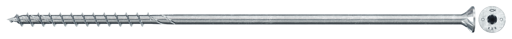 Výkonný vrut pro konstrukční spoje dřevostaveb se zápustnou hlavou, částečným závitem a drážkou TX