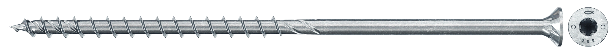 Výkonný vrut pro konstrukční spoje dřevostaveb se zápustnou hlavou, částečným závitem a drážkou TX