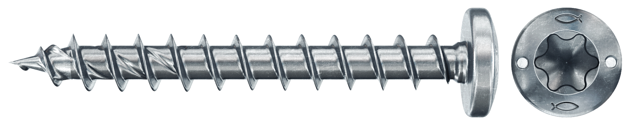 fischer PowerFast FPF II PTF je vrut do dřeva v bílém zinku s celým závitem a plochou hlavou s utahovací drážkou TX. Plochá hlava s hvězdicovou drážkou Torx poskytuje bitu skvělou stabilitu při šroubování vrutu. Půlkulatá hlava je ideální k upevňování kovových prvků na dřevo, např. tesařských úhelníků, třmenů, patek apod. Vrut s celým závitem se vyznačuje vyšší odolností proti vytažení.