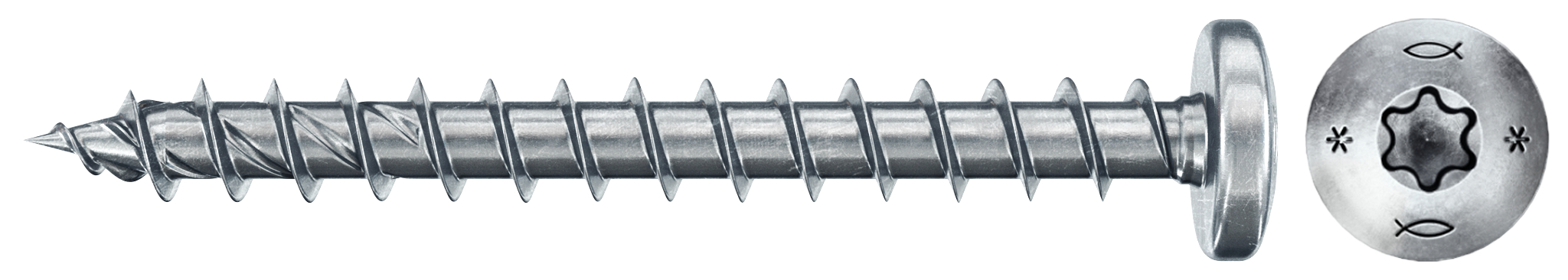 fischer PowerFast FPF II PTF je vrut do dřeva v bílém zinku s celým závitem a plochou hlavou s utahovací drážkou TX. Plochá hlava s hvězdicovou drážkou Torx poskytuje bitu skvělou stabilitu při šroubování vrutu. Půlkulatá hlava je ideální k upevňování kovových prvků na dřevo, např. tesařských úhelníků, třmenů, patek apod. Vrut s celým závitem se vyznačuje vyšší odolností proti vytažení.