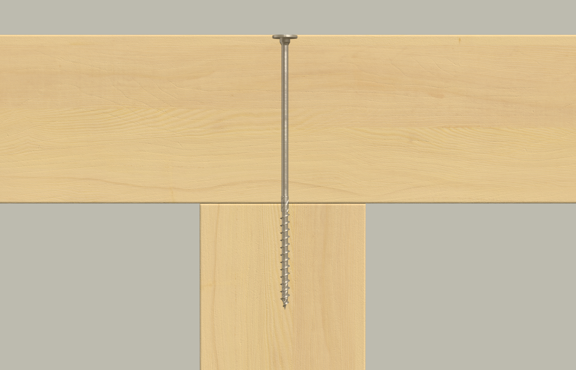 Výkonný vrut pro konstrukční spoje dřevostaveb se zápustnou plochou hlavou, částečným závitem a drážkou TX