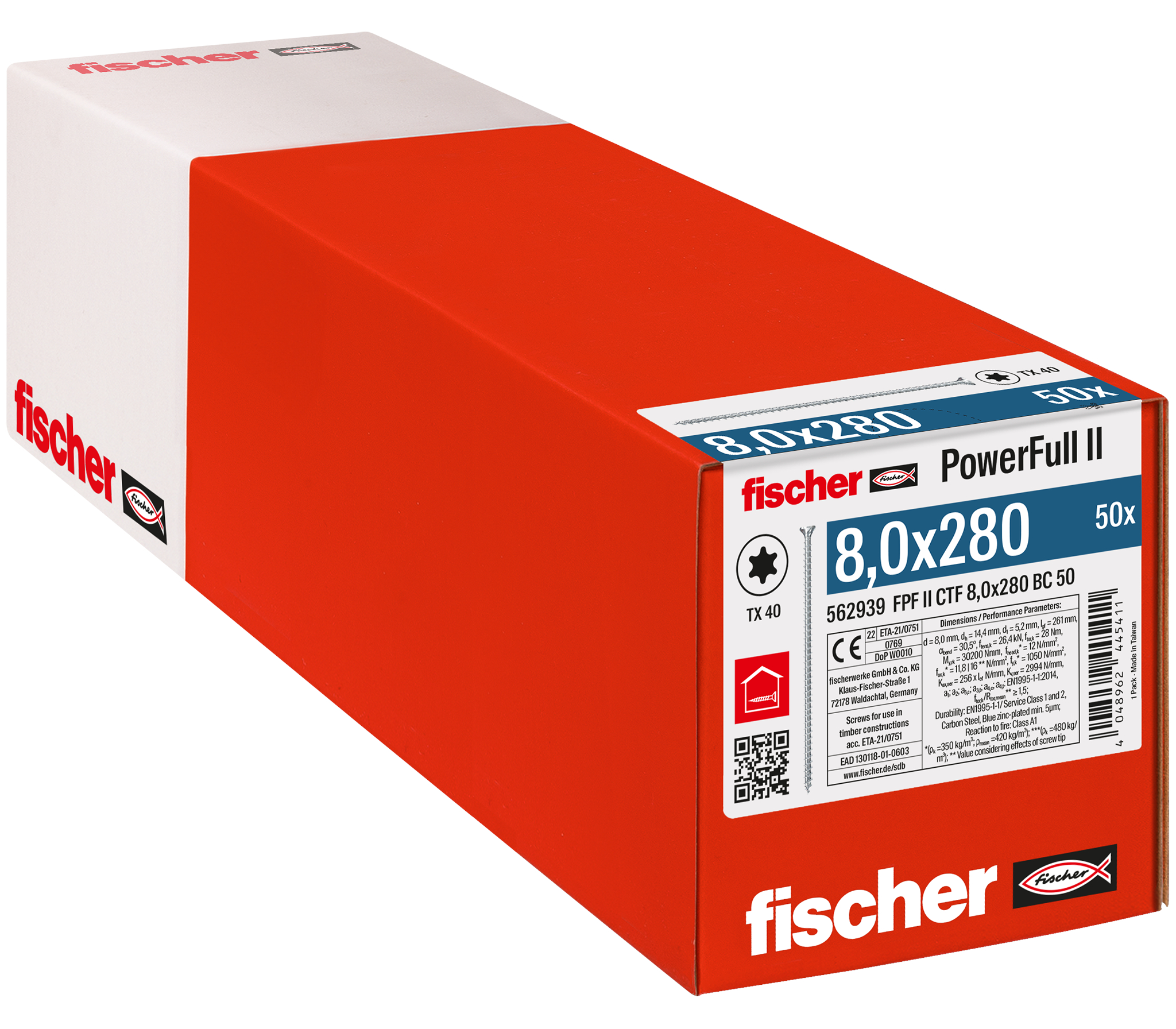 fischer PowerFull II je vrut s celým závitem určený pro konstrukční spoje tvrdého i měkkého dřeva. Zápustná hlava má na své spodní straně nový typ frézovacích drážek, díky kterým je vrut vhodný k upevňování tesařského kování, kterému při dosednutí neničí protikorozní povrchovou úpravu. ETA certifikát je nezávislým potvrzením vysoké bezpečnosti výrobku. Inovovaný tvar závitu šetří energii akumulátoru, a tak se na jedno nabití namontuje víc šroubů.