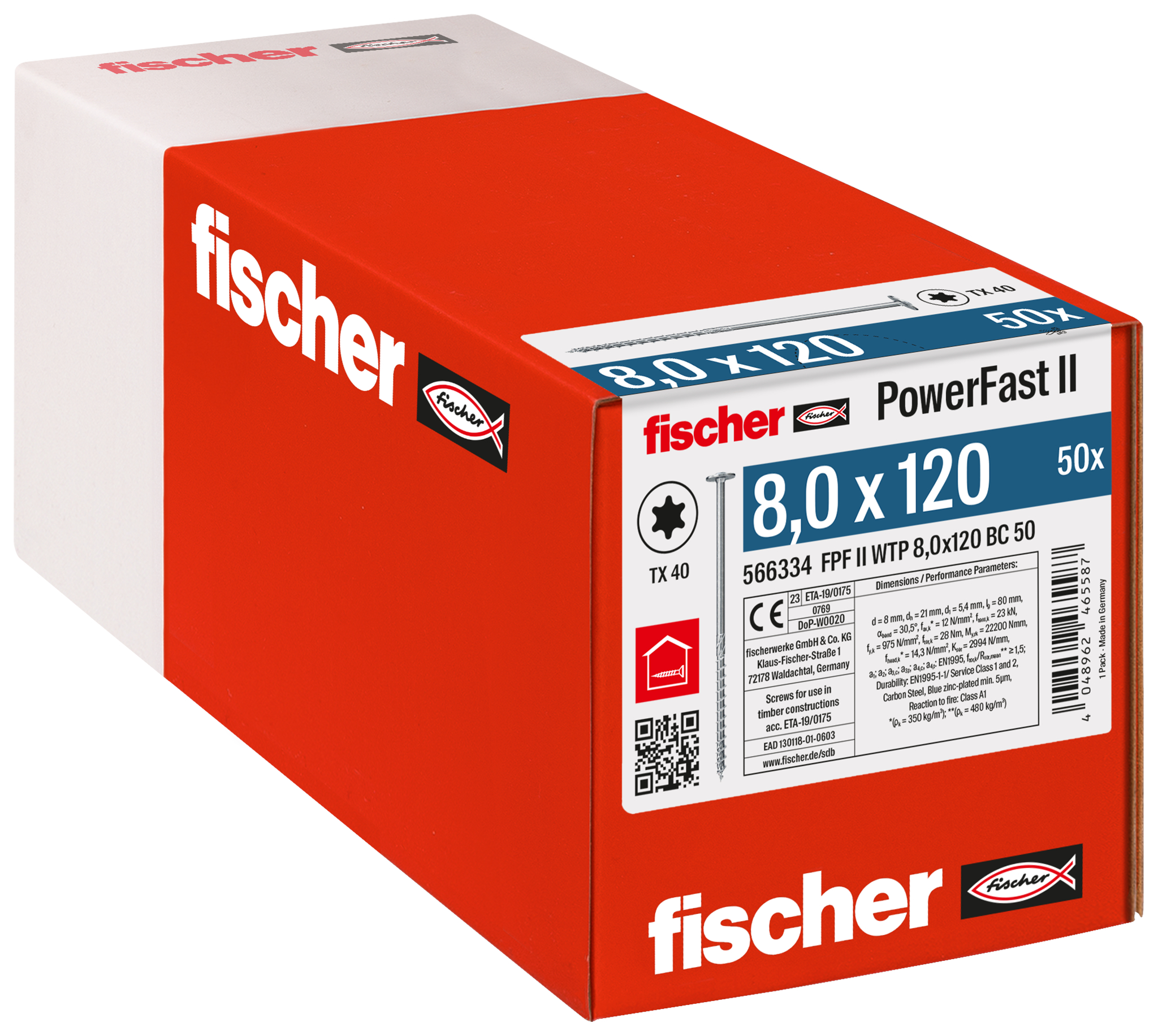 Vrut pro dřevostavby fischer PowerFast FPF II WTP 8,0x120 BC 50 BZn